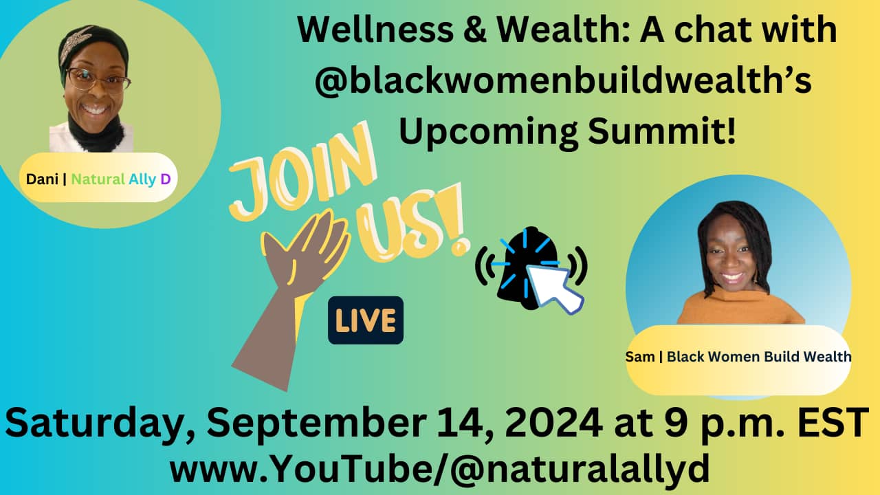 • Saturday, September 14th - Live with @blackwomenbuildwealth: In this special episode, we're chopping it up about the powerful connection between wellness and wealth with the incredible @blackwomenbuildwealth! We’ll be discussing their upcoming Summit, dedicated to empowering Black women to take control of their financial futures while prioritizing mental and emotional well-being.