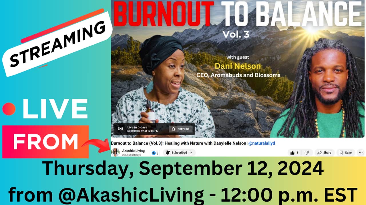 This Thursday, September 12th, join me live on Akashic Living's channel as I share insights on how aromatherapy can restore balance, alleviate stress, and enhance emotional well-being. Together, we'll explore practical ways to integrate essential oils into our daily lives, backed by the science supporting their healing benefits. Whether you're a leader, clinician, or a fellow social worker experiencing burnout, or simply someone looking to bring more harmony into your routine, this episode offers a soothing, fragrant journey toward wellness. This event will also be streaming on my channel, Natural Ally D. Join us as we embrace the healing power of nature to revitalize our spirits and strengthen our resilience.